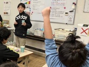 その後、プリントに記入して職員の自己紹介問題に答えてもらいました。