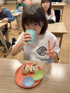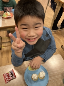 生地が焼きあがったら、いよいよミニクリスマスパーティー開催です🎉