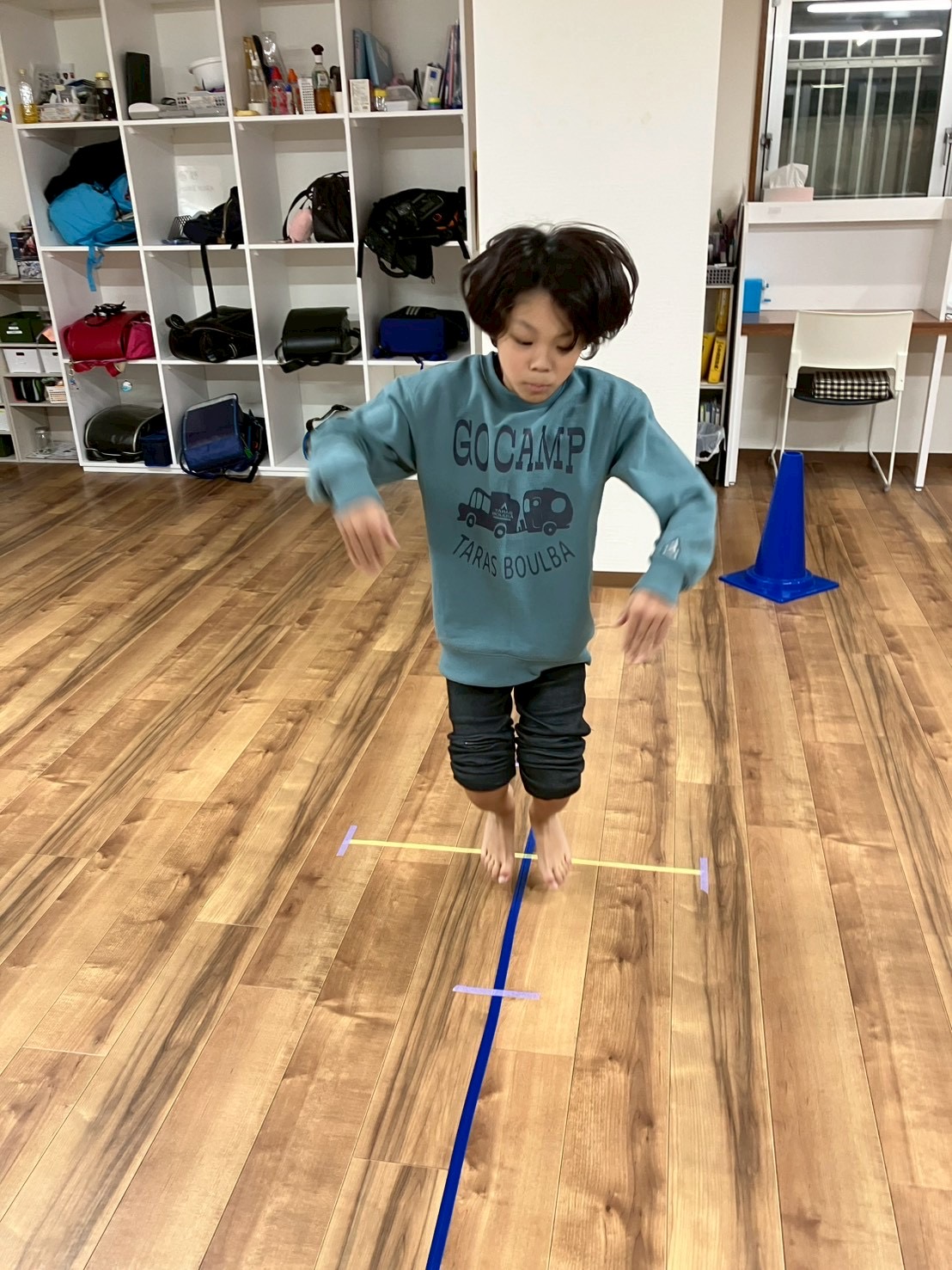 それぞれ自分ができるレベルに合わせて両足ジャンプか、片足でのジャンプかを選んでチャレンジしていきました🐸