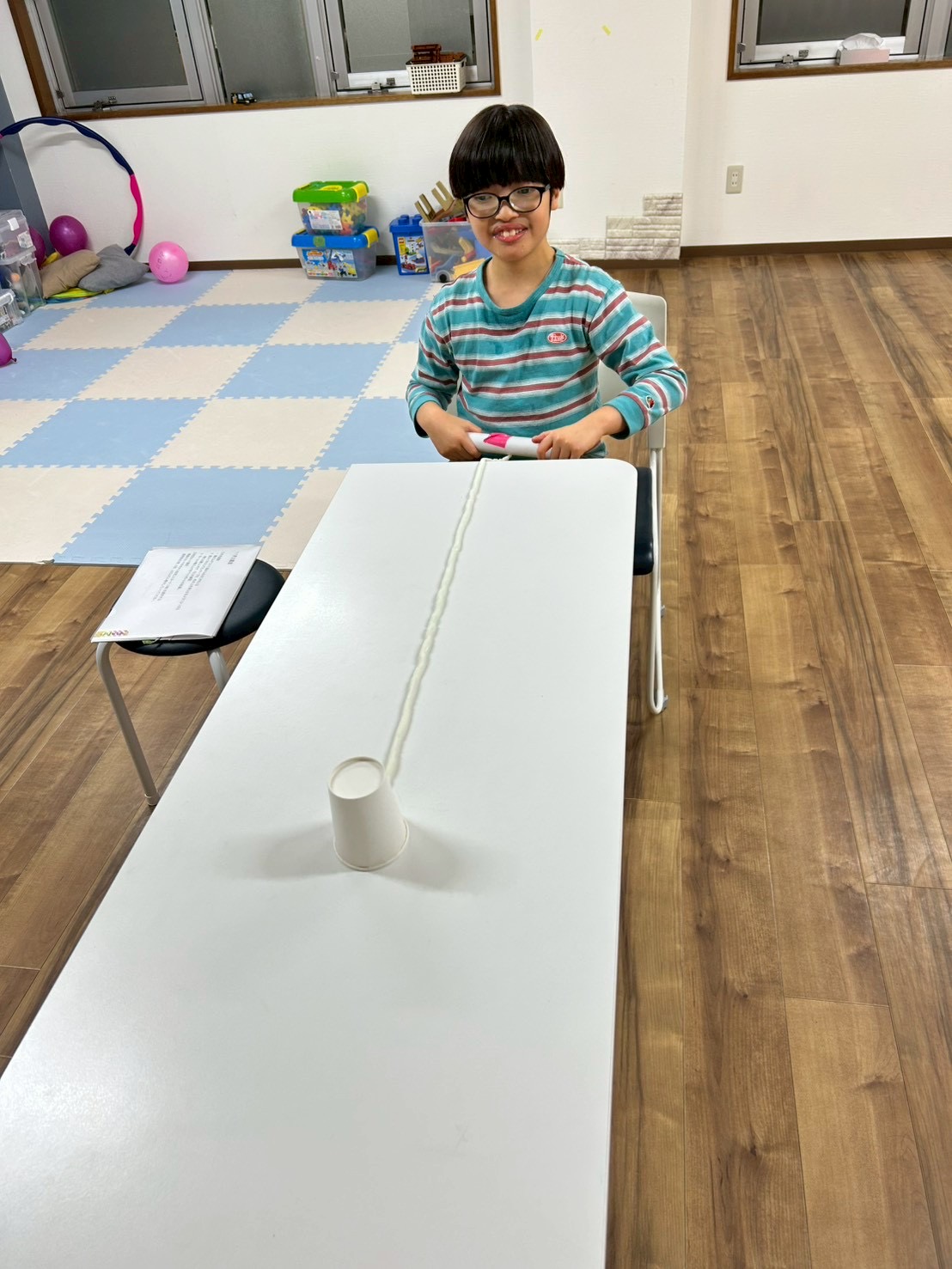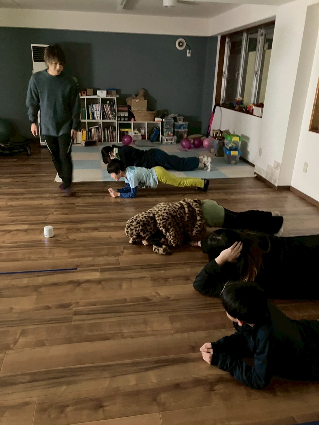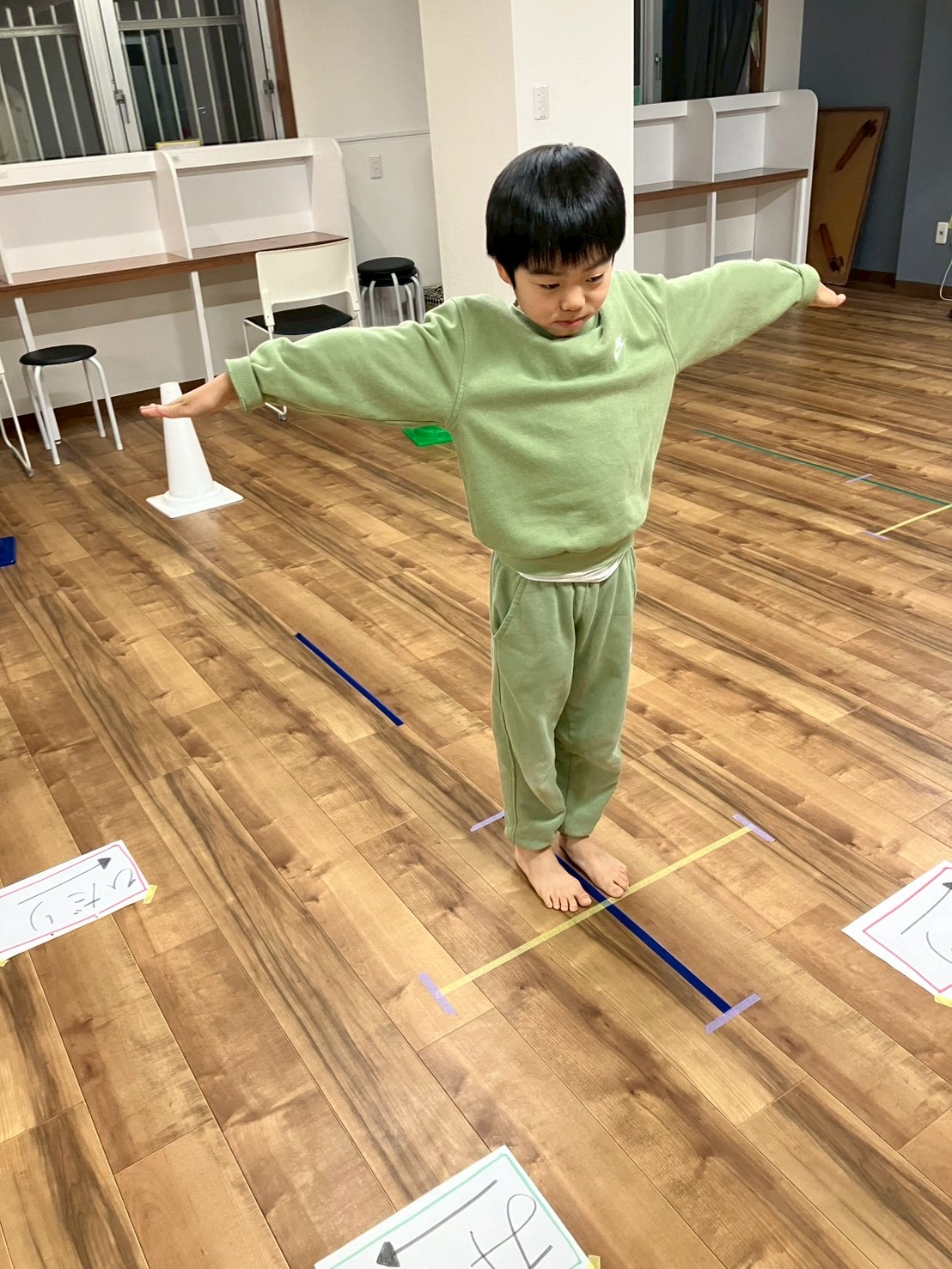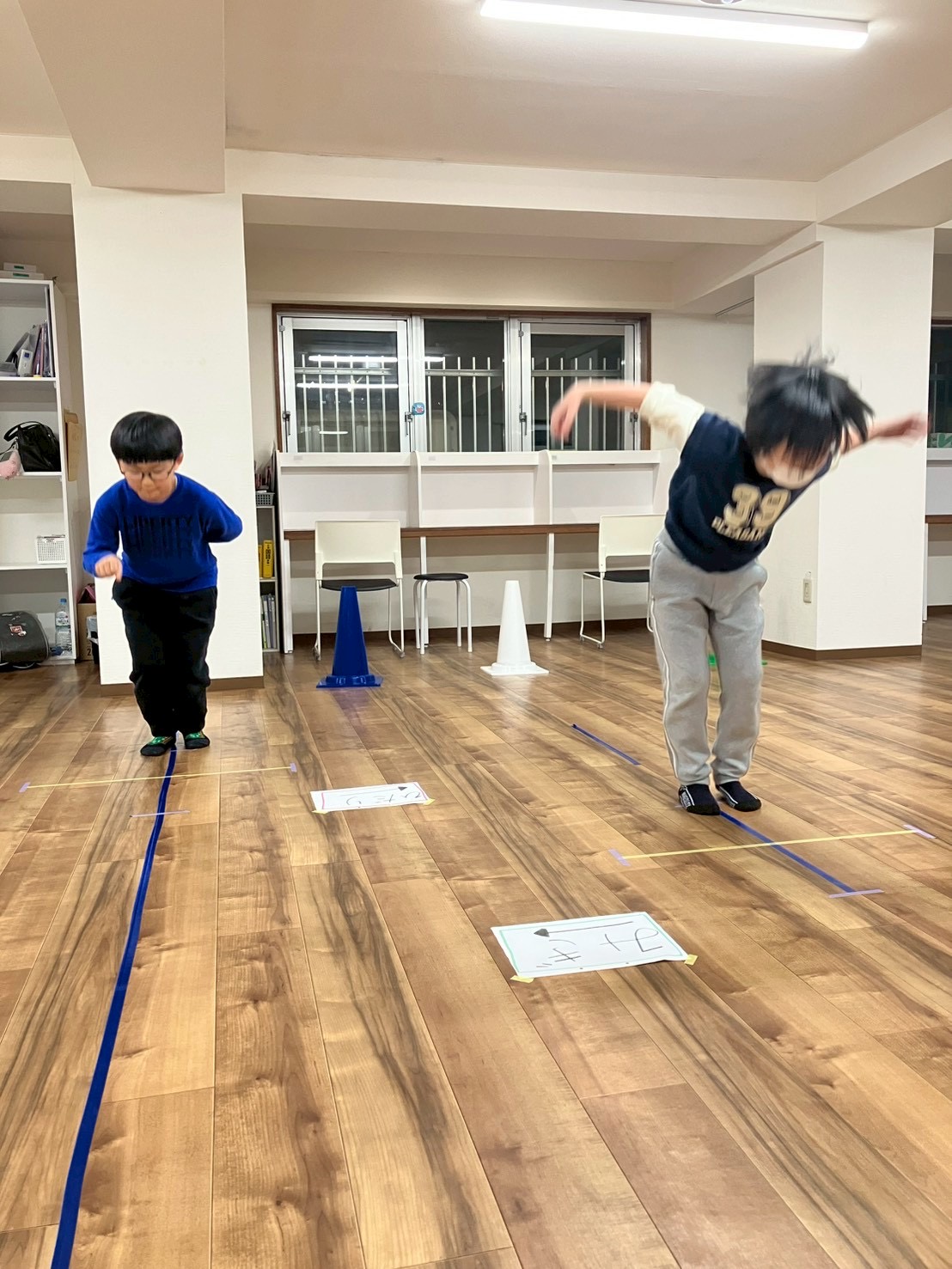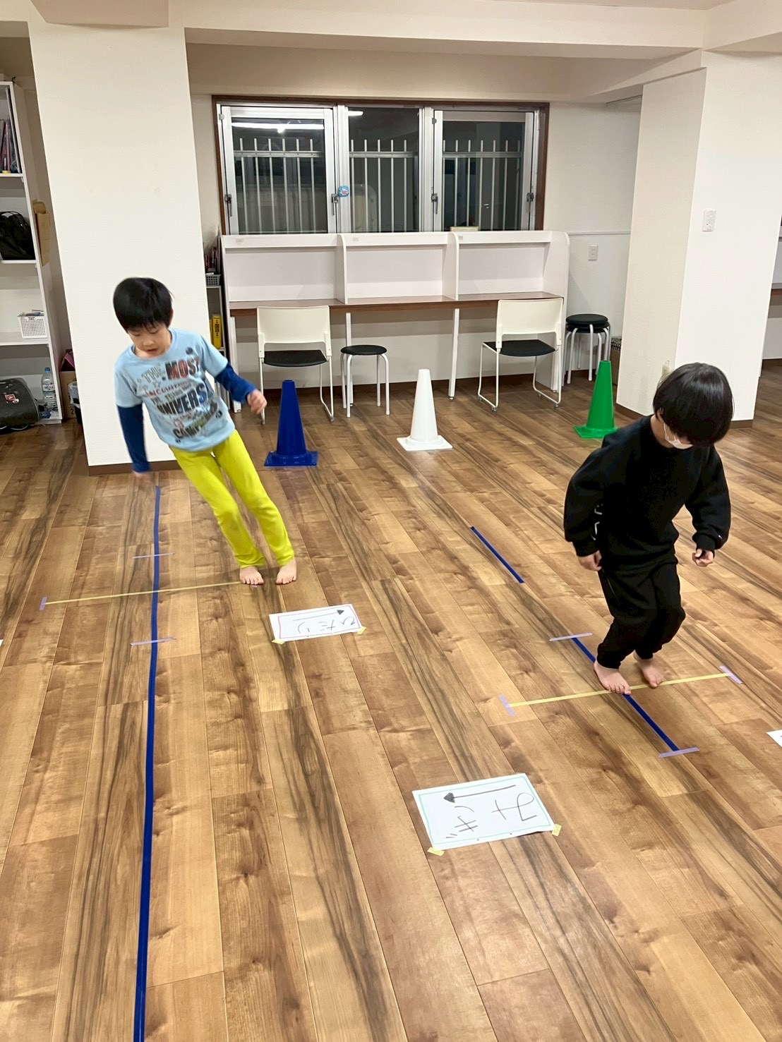 今回は「みぎ」「ひだり」と書かれたガイドを用意して、よりわかりやすくし、その後、前後左右の指示とは反対方向にジャンプしていきました。