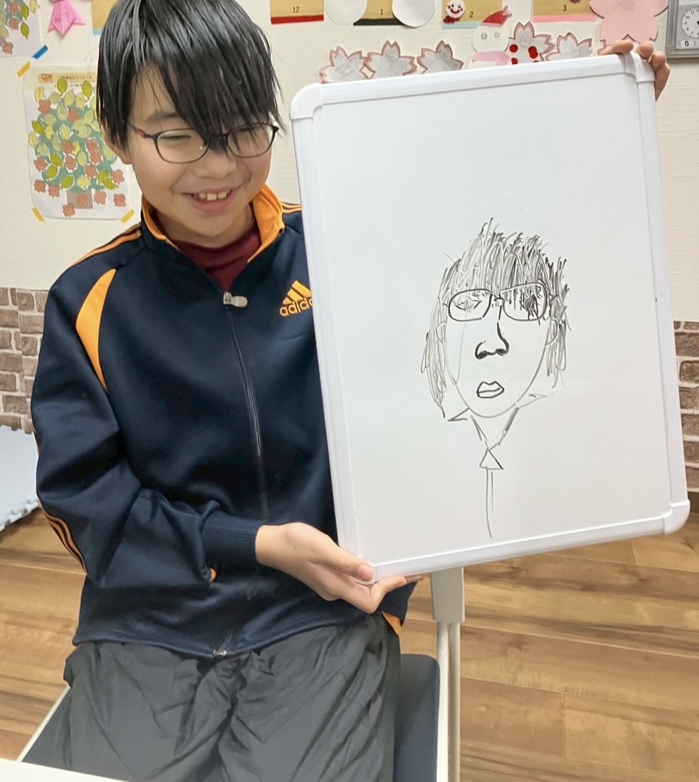 高学年のグループは、協力が今月のテーマで、みんなで協力して似顔絵を描いていきました!