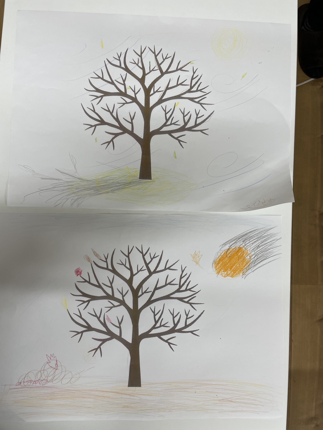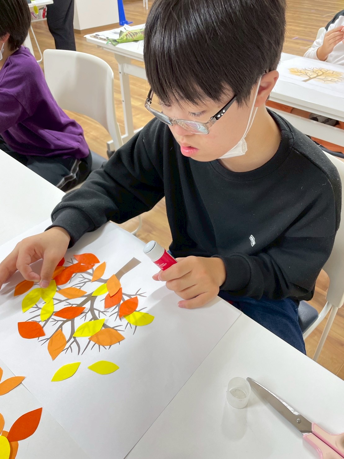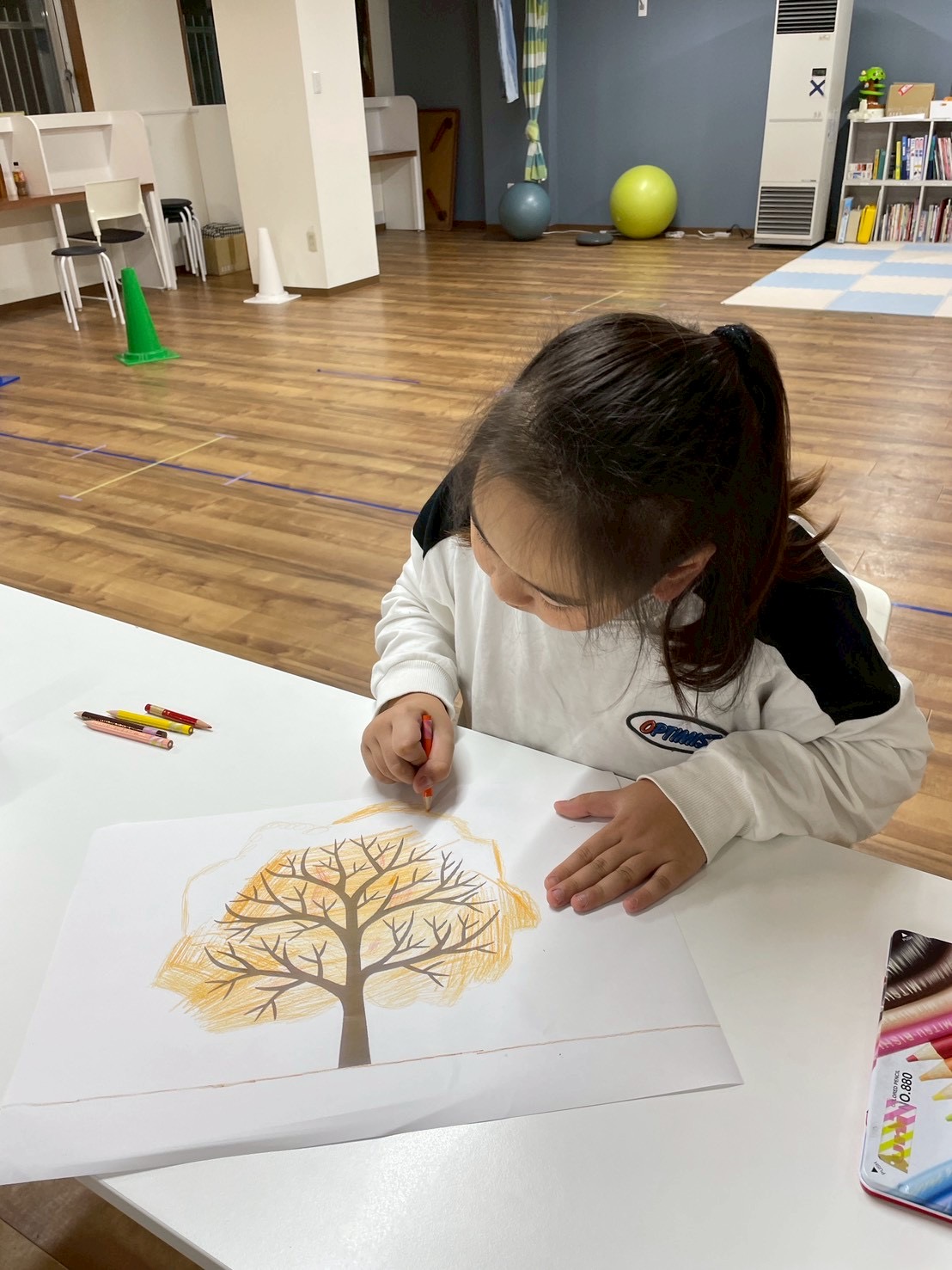 木に装飾する子もいれば、木の周りを足している子など、いろいろな秋の木ができました!