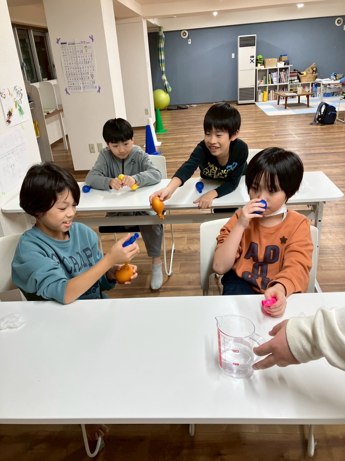 水溶き片栗粉とボールの感触の違いなどを楽しみました!