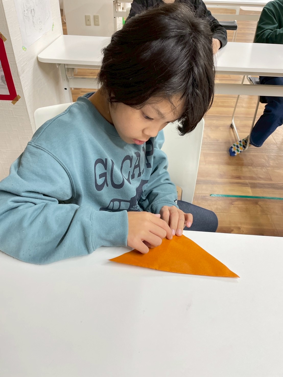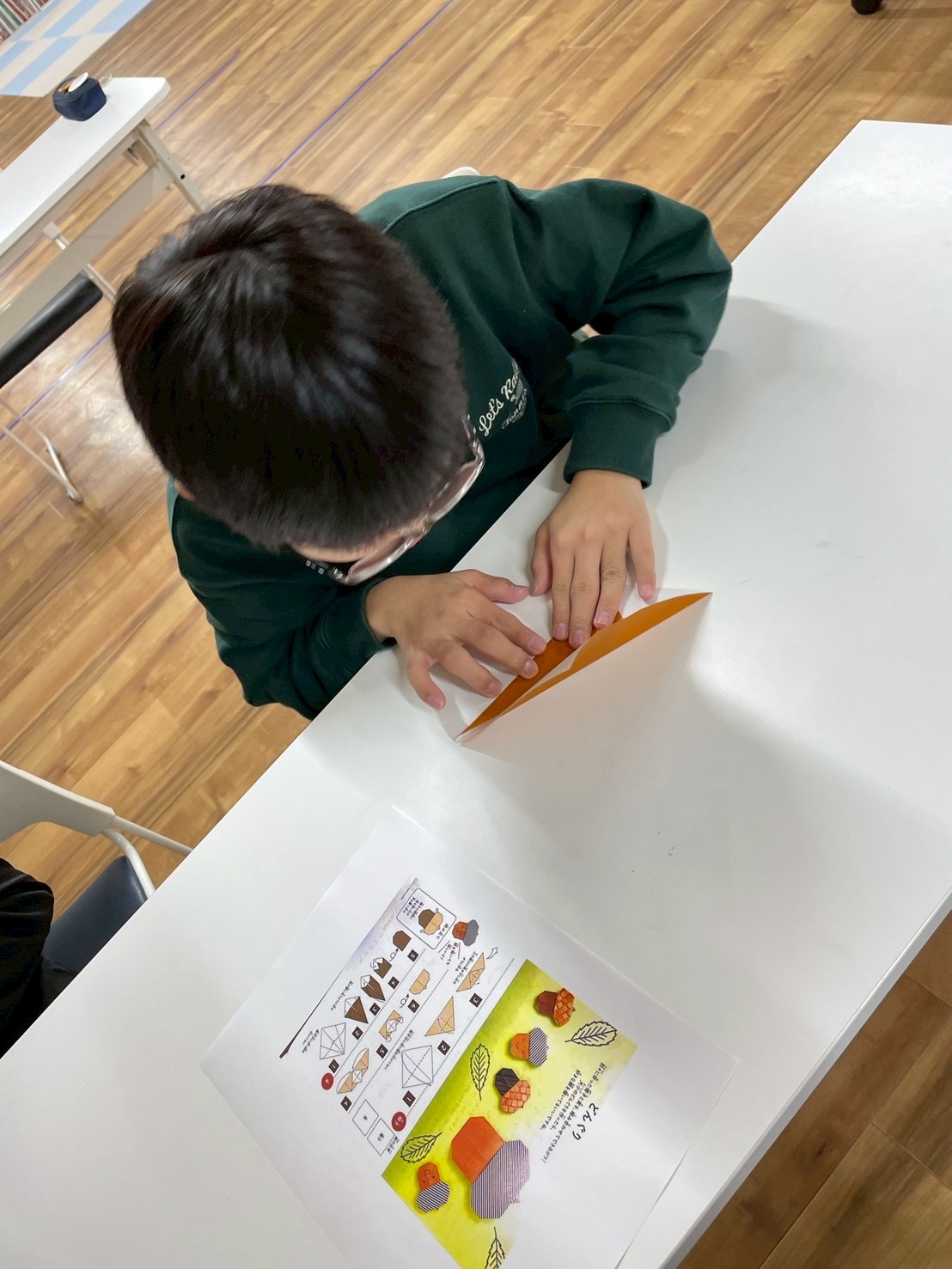 今週の秋の制作、折り紙でどんぐりを折りました!