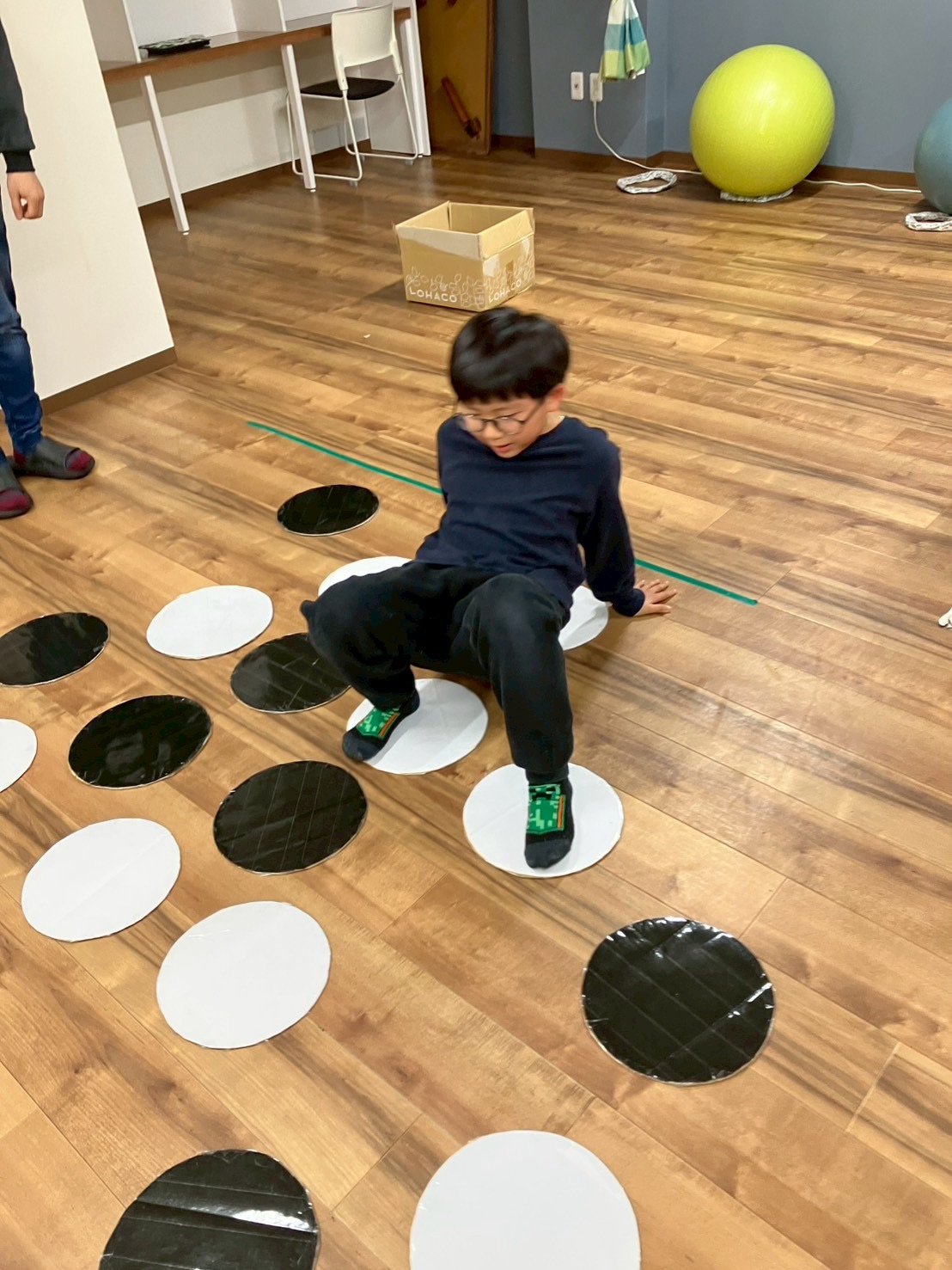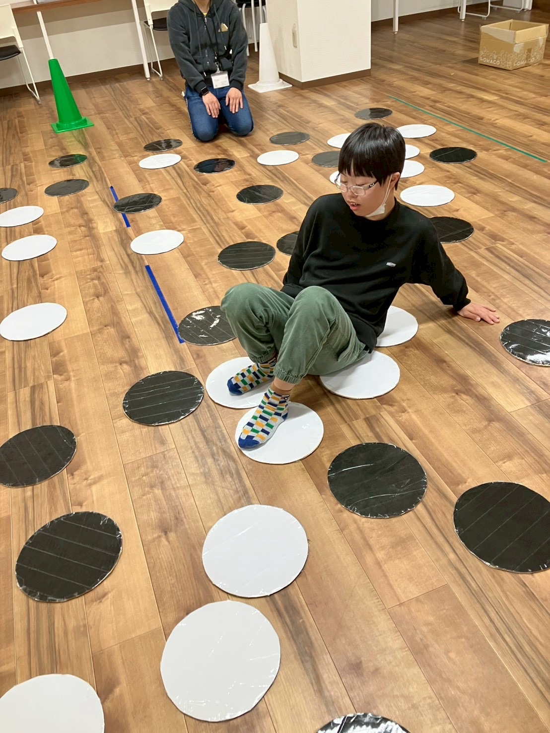 黒や、オセロの無い所に足をつかないように、どこを進めばゴールまでたどり着けるか考えながら進んで行きました🚩
